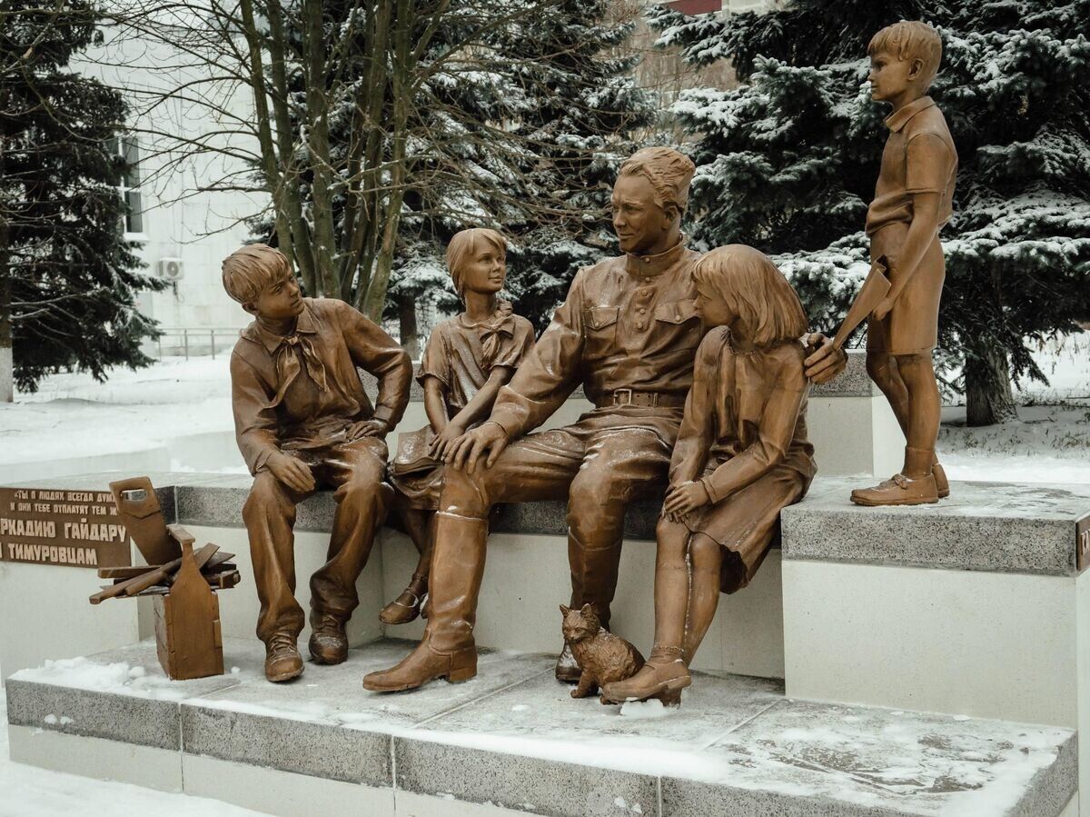 В Курске открыли памятник Аркадию Гайдару и тимуровцам