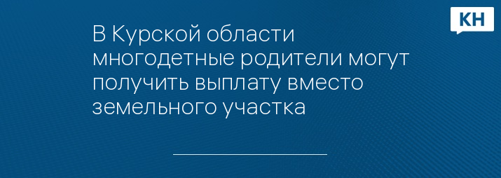 Многодетные семьи имеют право на однократное получение компенсации взамен предоставления бесплатного земельного участка в Курской области.