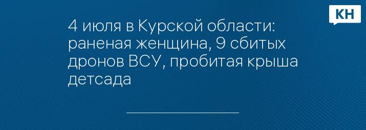 4 июля в Курской области: раненая женщина, 9 сбитых дронов ВСУ, пробитая крыша детсада