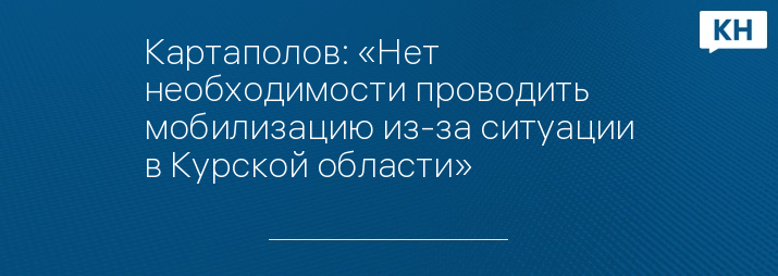 Картаполов: «Нет необходимости проводить мобилизацию из-за ситуации в Курской области»