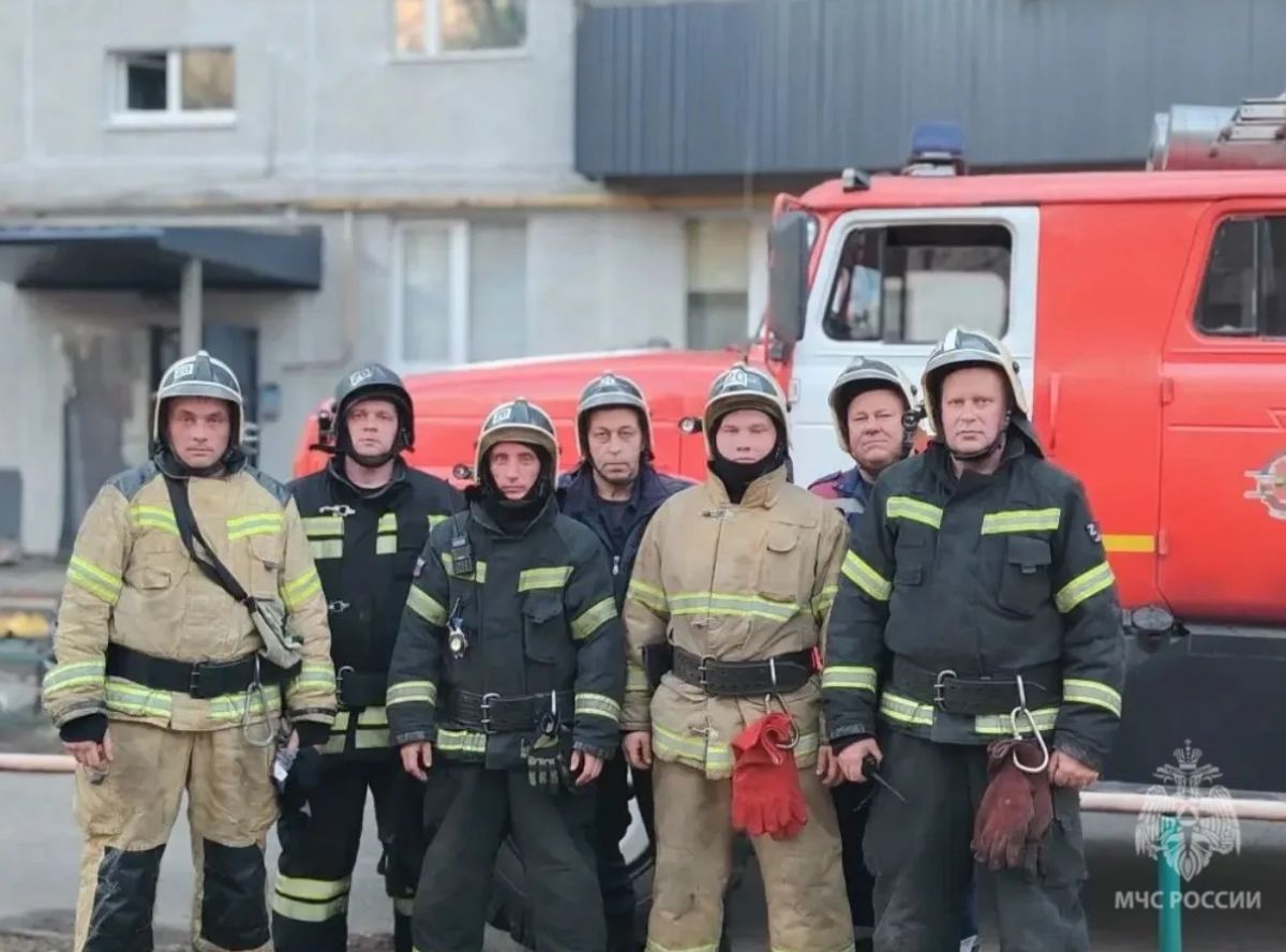 В Курске пожарные спасли пятерых человек, включая двоих детей, из горящей квартиры