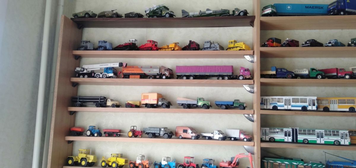 В его коллекции представлены разнообразные виды транспорта: легковые автомобили, автобусы, троллейбусы, трамваи, грузовики и даже ракетная установка.