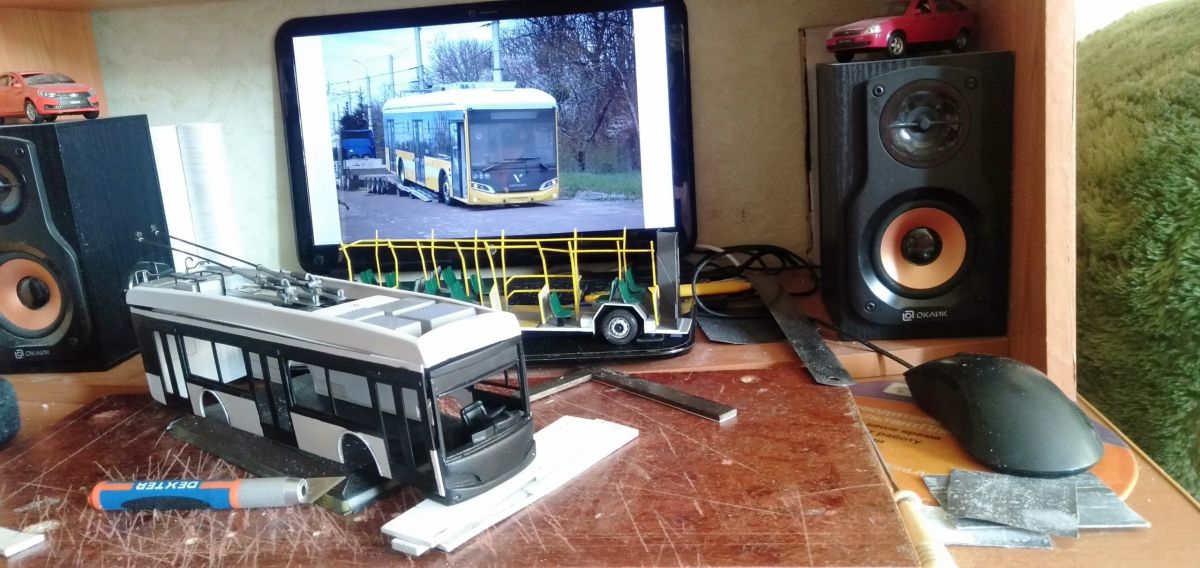 В настоящее время мастер сосредоточен на создании моделей электротранспорта, в частности, работает над троллейбусом Volgabus "Пересвет". В планах – изготовление "Синары", современного троллейбуса челябинского производства.
