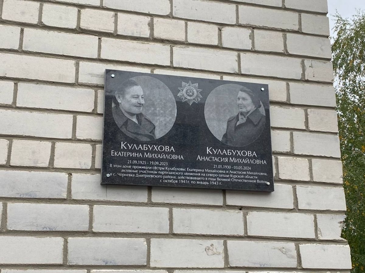 В Курске состоялось открытие мемориальной доски в честь сестер-партизанок Екатерины и Анастасии Кулабуховых. Памятный знак разместили на фасаде дома, где они жили.