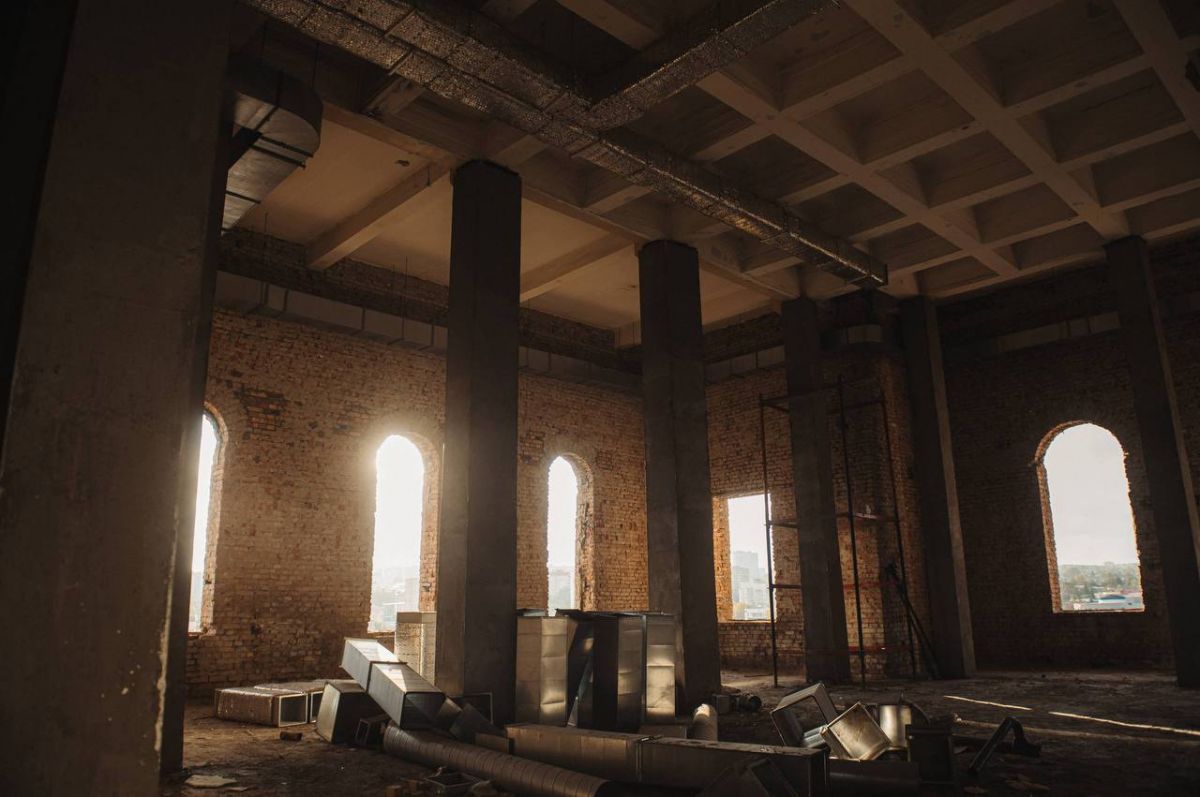 На данный момент подрядчик ведет работы по восстановлению знакового фасада «здания со шпилем».