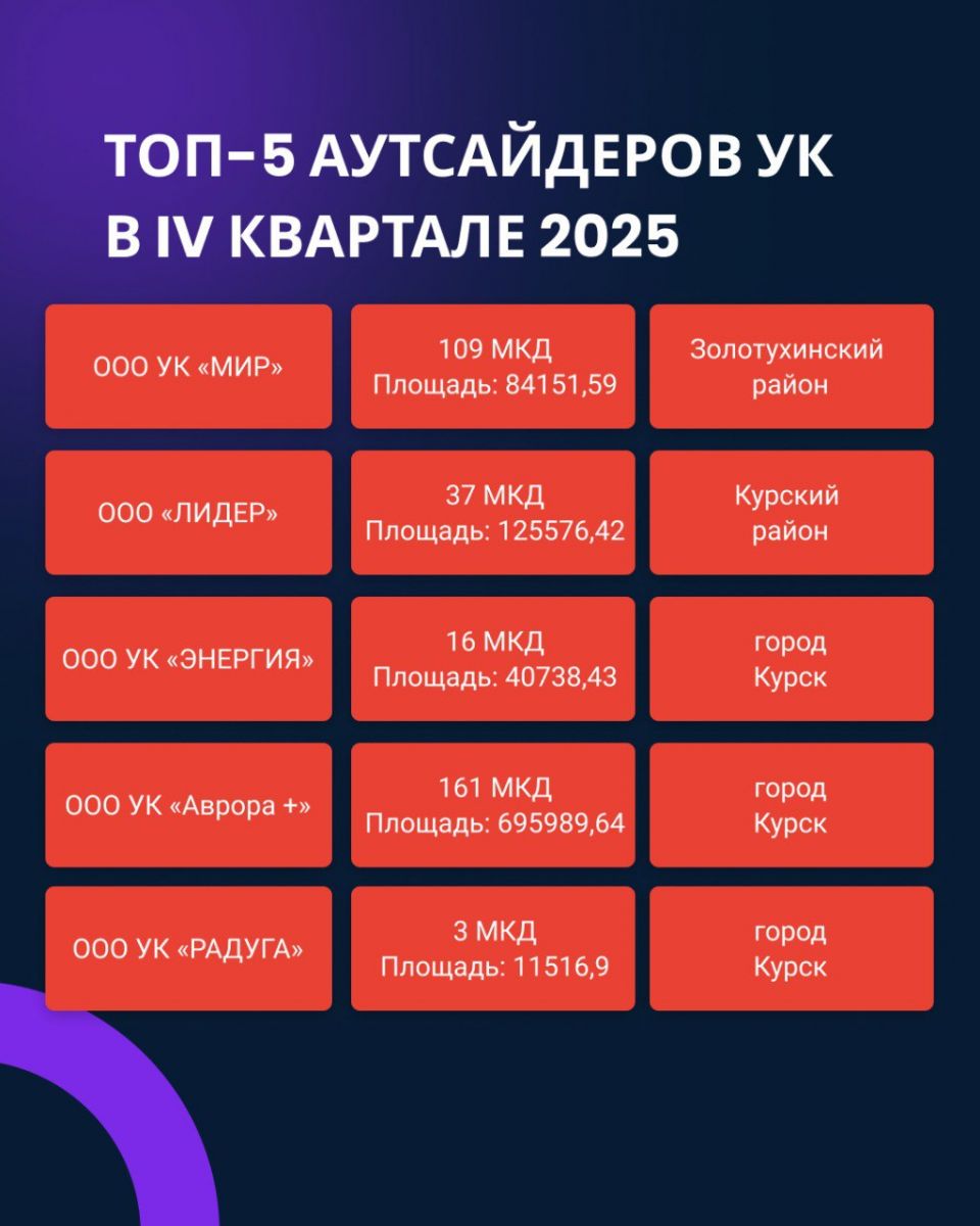 Курская область представила рейтинг управляющих компаний за 4 квартал 2025 года