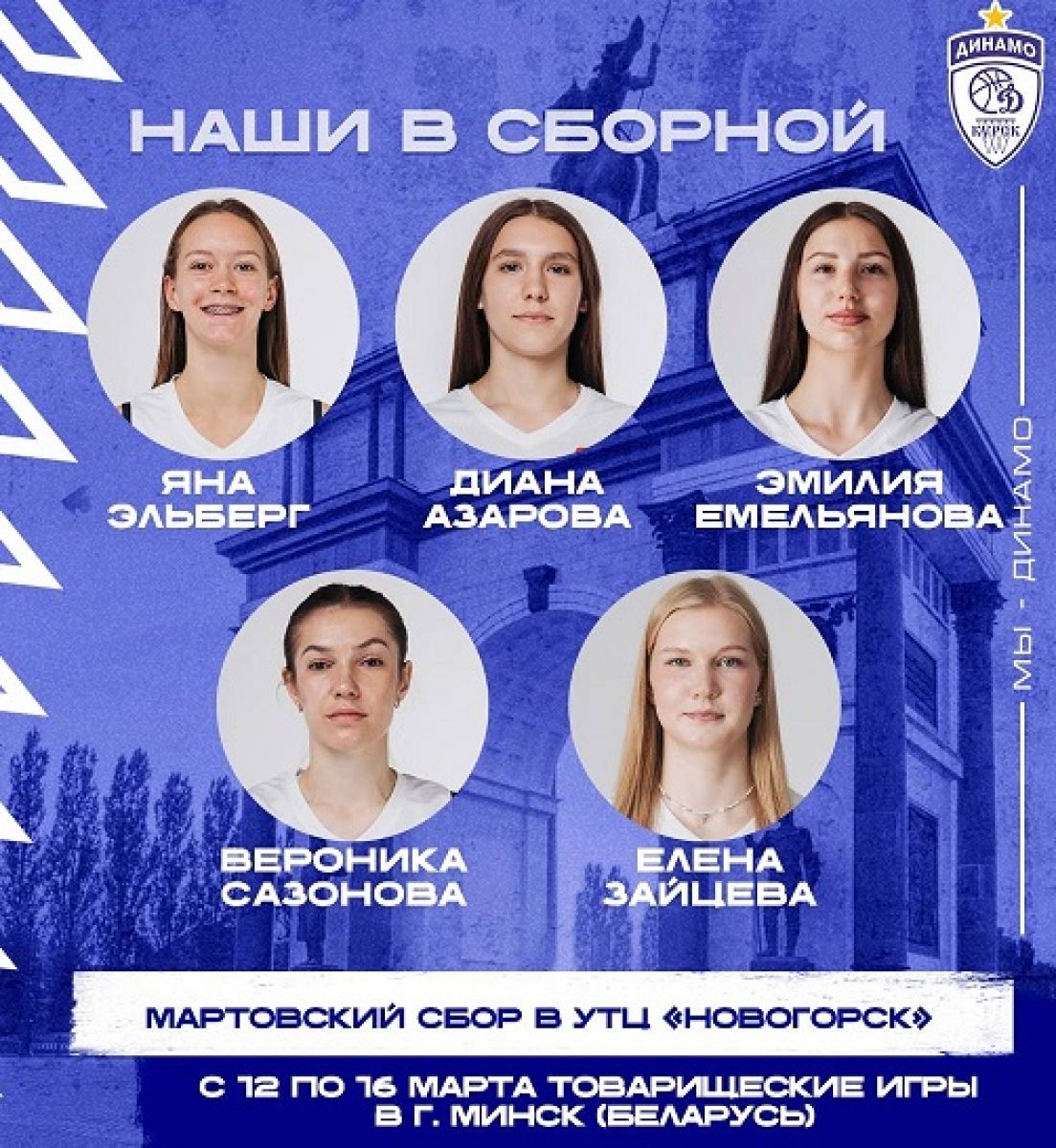 Пять игроков курского "Динамо" вошли в расширенный состав сборной России по баскетболу. В национальную команду попали: Диана Азарова, Яна Эльберг, Эмилия Емельянова, Вероника Сазонова и Елена Зайцева.