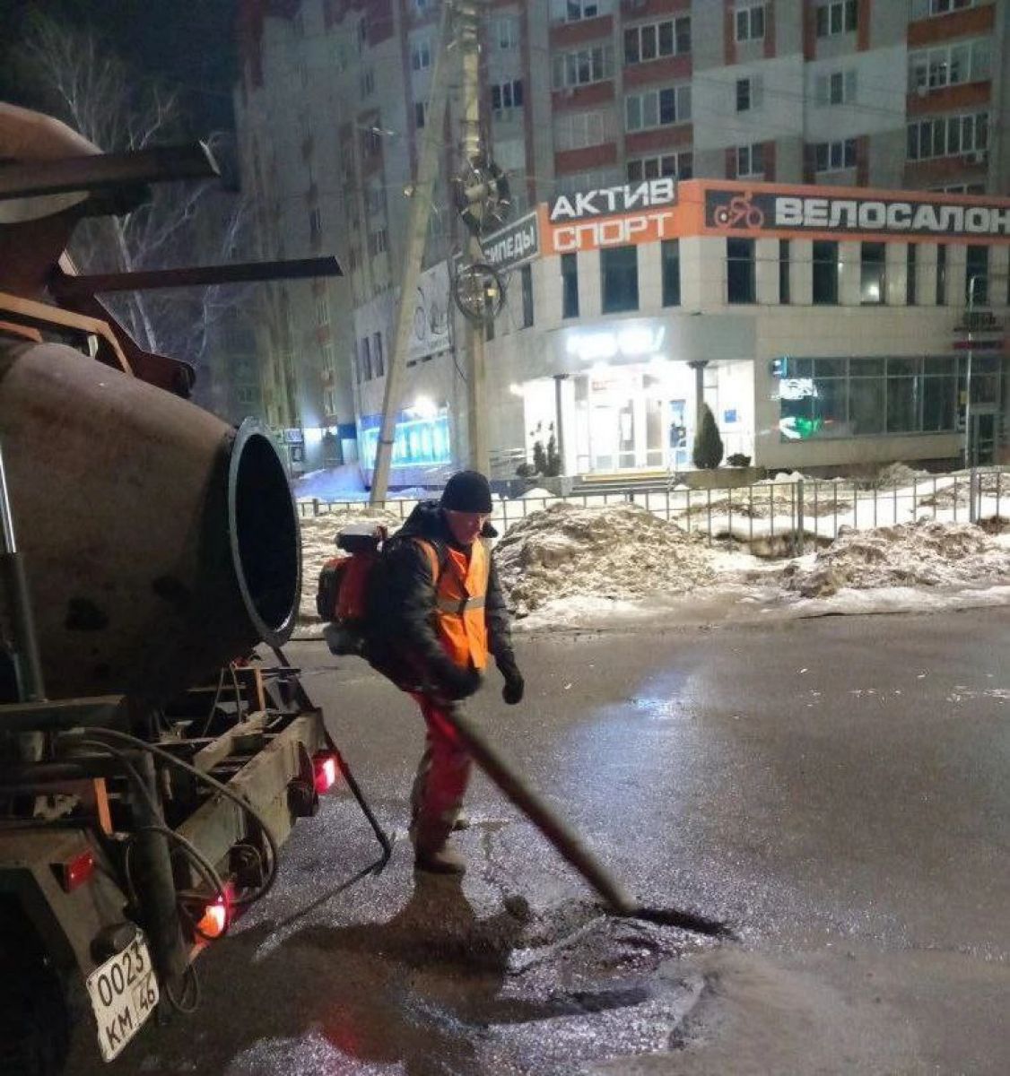 В Курске ночью ремонтировали дороги на ключевых развязках и перекрестках