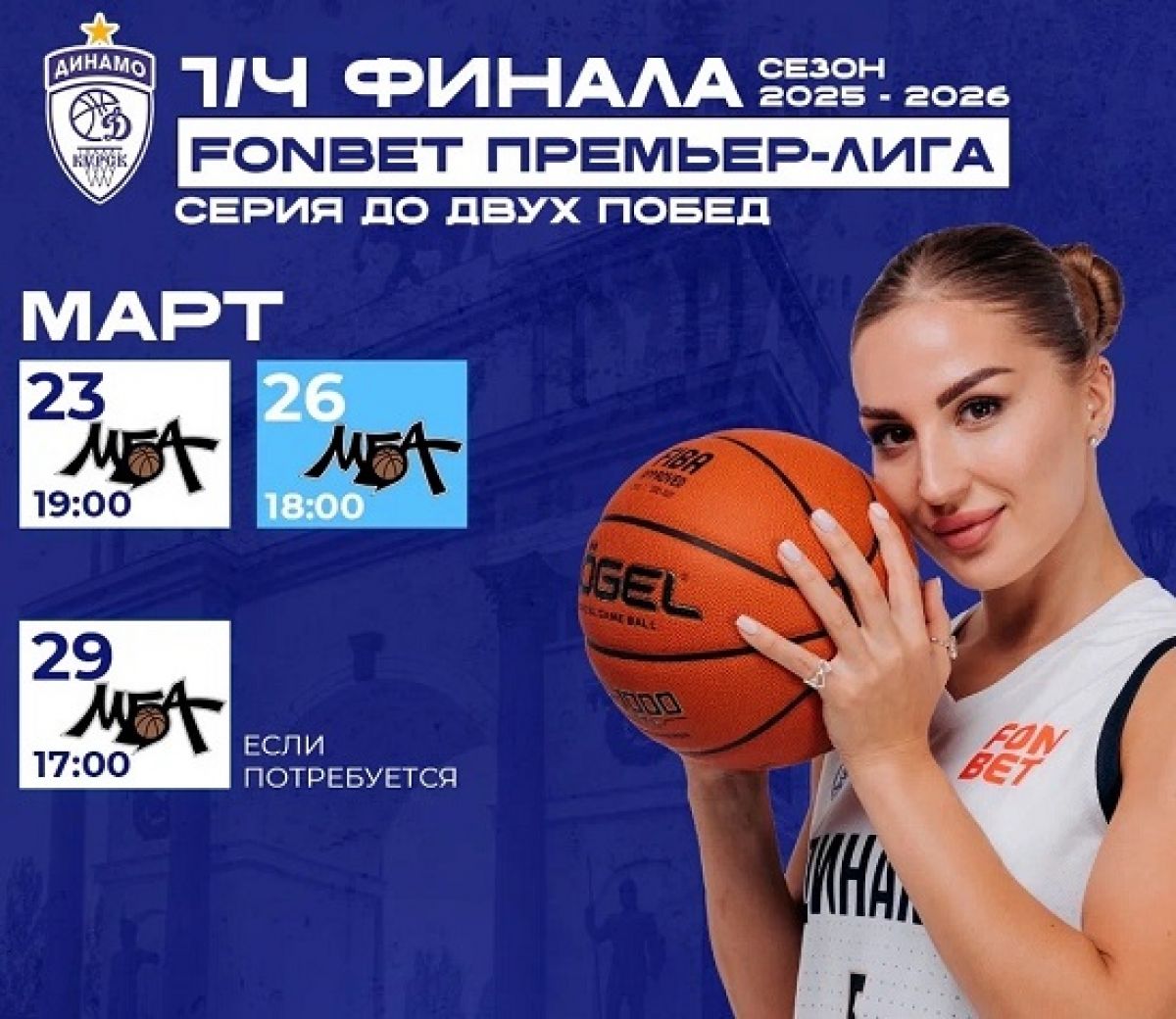 Курское "Динамо" проведёт эту серию против московского "МБА-МГУСиТ". Серия пройдёт из трёх игр (до двух побед).