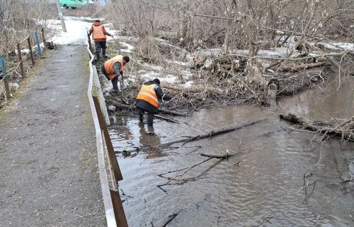 В Курске начали очистку водопропускных канав и осмотр ручья перед паводком