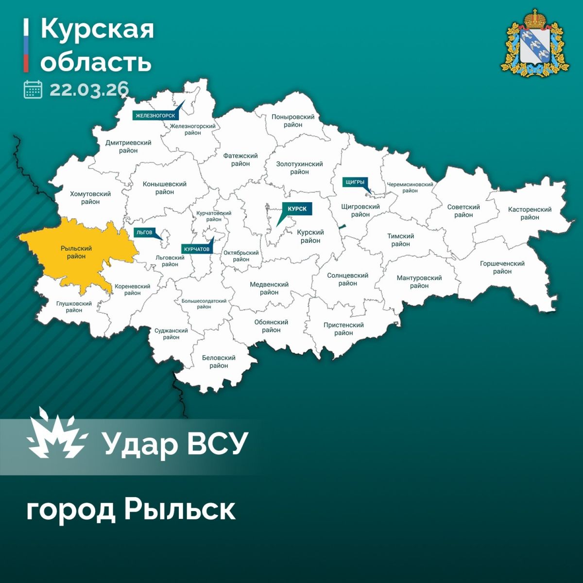 ВСУ обстреляли Рыльск, есть пострадавшие, сообщил губернатор Курской области